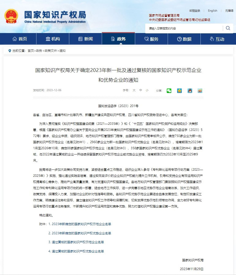 近日,国家知识产权局发布了《国家知识产权局关于确定2023年新一批及通过复核的国家知识产权示范企业和优势企业的通知》,圣阳股份获评“国家知识产权优势企业”,这是自圣阳股份荣膺“国家企业技术中心”、“国家CNAS实验室”、“国家博士后科研工作站”及“国家绿色工厂”等国家级荣誉后又一张“国家级企业名片”。